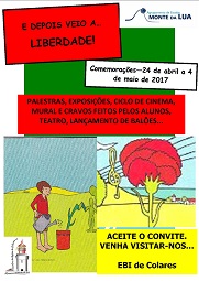 Para celebrar o dia 25 de abril, decorreram entre os dias 24 de abril e 4 de maio, na escola EBI de Colares, diversas atividades: palestras, exposições, ciclo de cinema,mural e cravos feitos pelos alunos, teatro, lançamento de balões, etc..