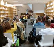No âmbito do tema "Formas de solidariedade social na sociedade portuguesa", o 12º D dinamizou, na biblioteca, a atividade Três Dedos de Conversa, tendo esta sido presenciada pelos alunos do 11º N.